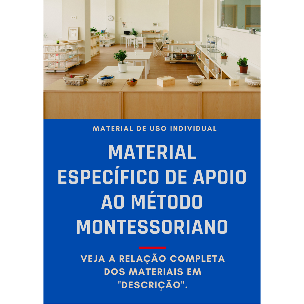 Kit individual de materiais específicos ao método pedagógico motessoriano para ser utilizado no decorrer do ano letivo.